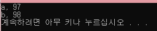 'a' + 1과 같이 작은따옴표로 묶은 문자는 정수를 더하거나 뺄수 있다.