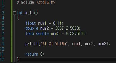 -long double: 값 할당 시 숫자 뒤에 l을 붙인다.