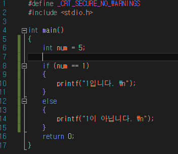 if 조건문: num 값이 1이라면 "1입니다." 라고 출력
