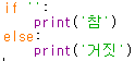 :문자열 내용이 존재시에 참, 빈 문자열은 거짓으로 출력된다.