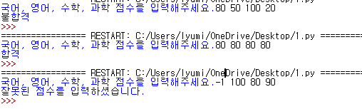 [파이썬이론]else문, 평균을 이용하여 합격 여부 판단하기 문제 본문