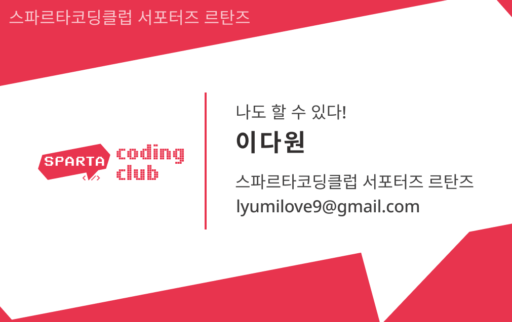스파르타코딩클럽 르탄즈 1기로 활동중인 이다원 입니다!
