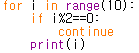 1부터 10까지의 숫자들 중 2로 나눴을때 나머지가 0인수(짝수)는 건너뛰고 나머지가 0이 아닌수는 출력하게 되는 코드이다->1부터 10까지 홀수 출력