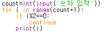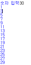 +ex-1) 입력한 숫자까지 중 홀수를 출력해라.
